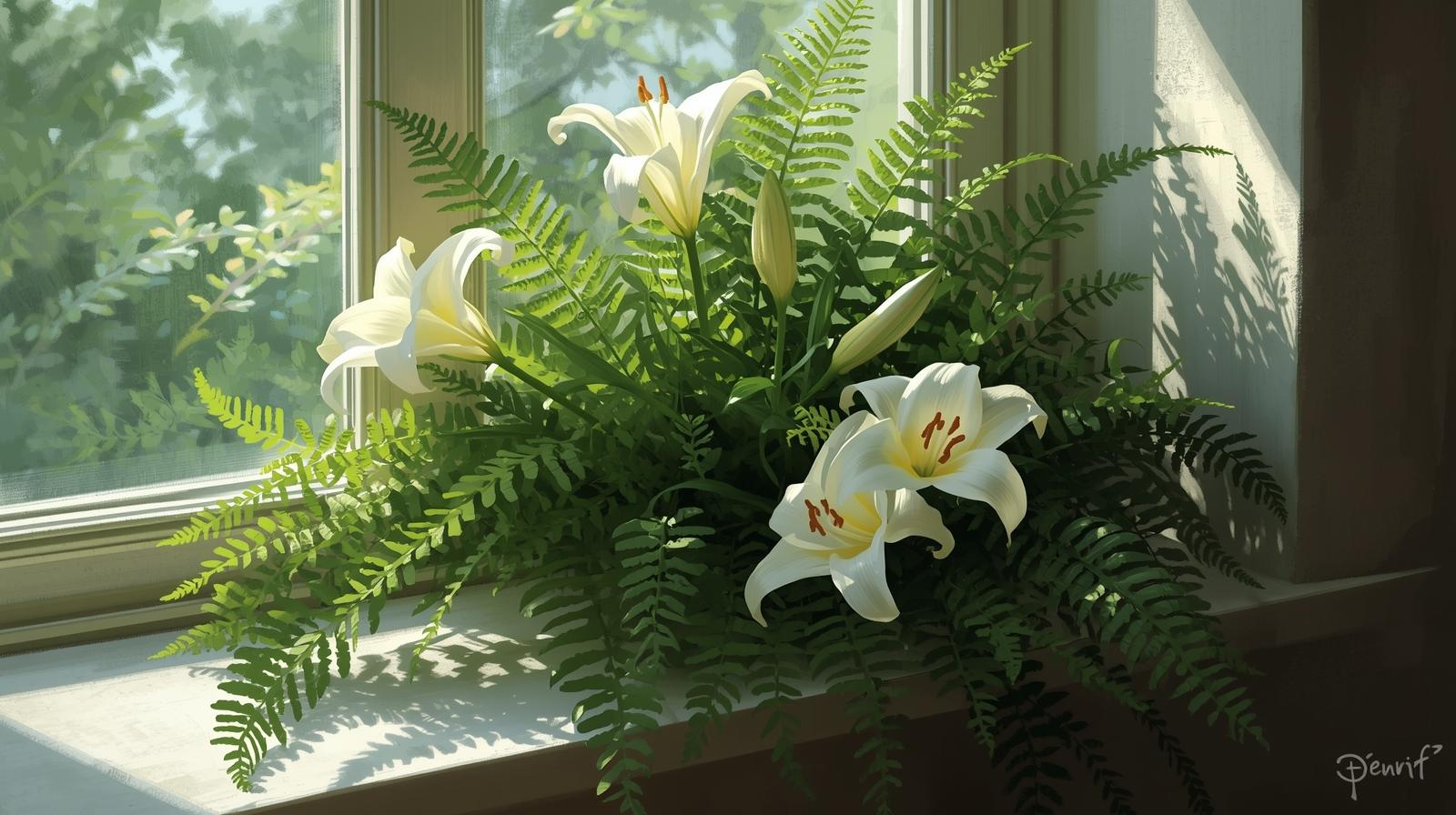 • Ferns: Add lush texture and prefer humid, shaded areas.
